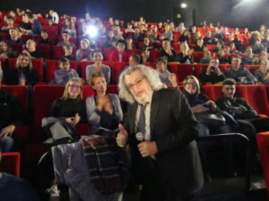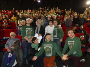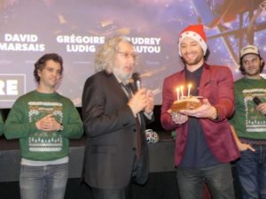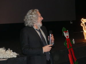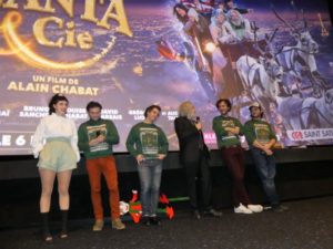 Alain Chabat et les comédiens de Santa & Cie ont été accueillis par un renne et ses maîtres à leur arrivée au Pathé des Quinconces, au Mans. « Ce film raconte l’histoire de Santa Claus, dont les 92 000 lutins tombent soudainement malades à seulement deux jours de Noël », a résumé le cinéaste aux nombreux spectateurs. Pour le plus grand bonheur de la salle, il s’est adonné à un cours de traduction du langage des rennes. « En fait, c’est une langue très subtile, elle comporte deux sons », a-t-il lancé avec malice. Il s’est évidemment fendu de quelques touches d’humour dont il a le secret : « Le plus dur a été d’obtenir l’autorisation de survoler Paris en traîneau ». La rencontre s’est conclue par l’innocente et flatteuse question d’un petit garçon à Alain Chabat : « Est-ce que tu es le vrai Père Noël ? ». Ce à quoi le réalisateur a répondu : « Non, mais j’espère que tu vas aimer celui que tu verras dans le film. » La joyeuse bande s’est ensuite rendue au Méga CGR de Saint-Saturnin. Alain Chabat s’est vu remettre une bûche de Noël pour son anniversaire avant d’échanger avec des enfants.