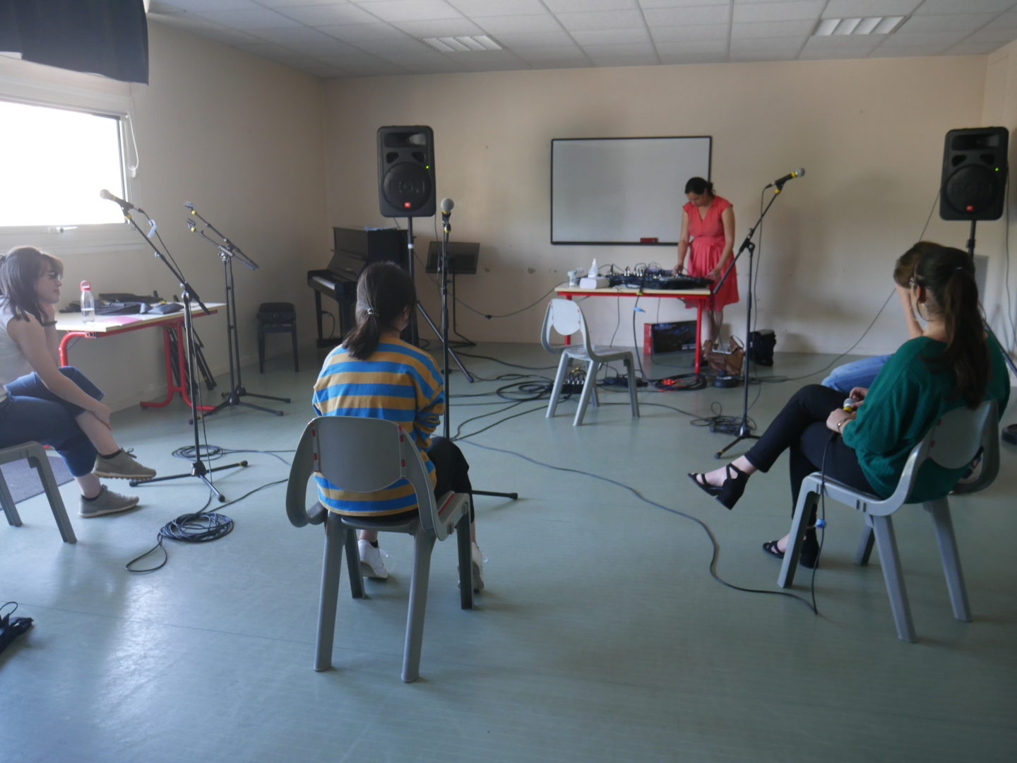 En plus du piano, l’intervenant utilise un looper, instrument électronique qui permet l’enregistrement de pistes sonores afin de les faire rejouer ensuite en boucle. Cet outil permet quatuor de réaliser une base rythmique et une base mélodique avec la voix. Le tout avec application et dans une bonne humeur contagieuse. « Nous prenons beaucoup de plaisir, Lola Baï est bienveillante », confient les quatre interprètes enthousiastes.
