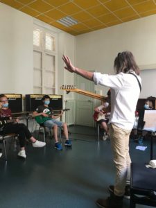 La Compagnie TDM, en association avec la ville du Mans, a proposé à des musiciens professionnels d’encadrer des ateliers artistiques dans le cadre du projet « Et maintenant… Demain ? ». Olivier Salmon, musicien depuis plus de quarante ans, fait partie des intervenants. Il a permis aux jeunes participant(e)s de découvrir ou de se perfectionner à la guitare du 17 au 21 août 2020.