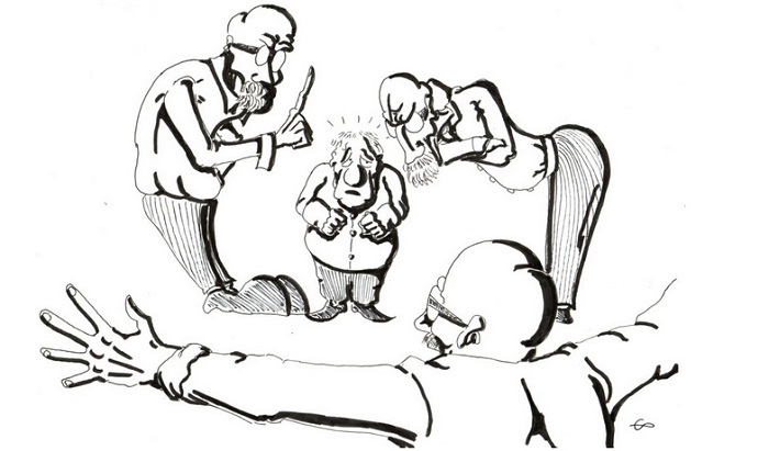 Les dialogues sont extrêmement comiques, entre un Ionesco effacé, timide et peureux, et les trois Bartholoméus autoritaires et sûr d’eux-mêmes. Cependant, ils ont tendance à se contredire et à se lancer dans des querelles intellectuelles sans queue ni tête pendant que leur « élève » subit leur courroux. Bien sûr, l’absurde est toujours très présent. L’apparition des trois Bartholoméus se fait selon un cercle vicieux : le premier entre dans le bureau de Ionesco et lui réclame d’entendre sa pièce. Le dramaturge commence sa lecture et on comprend qu’il s’agit de la pièce à laquelle nous assistons. Un deuxième savant entre et réclame à son tour la lecture de la pièce, Ionesco s’exécute, et voilà le troisième Bartholoméus qui entre en scène.