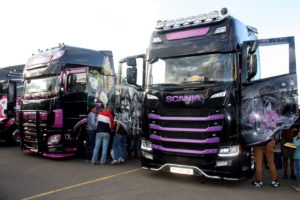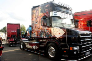 Durant cette 35e édition des 24 heures du Mans se déroulaient les championnats de France et d’Europe de la FIA, mais également, le célèbre Truck Show où des camions paradent sur le circuit Bugatti du Mans. Entre les camions avec autocollants, les véhicules tunés, les modèles américains, les semi-remorques entièrement peints, le village américain, les exposants et pilotes avaient sorti le grand jeu pour ravir le public. Les visiteurs pouvaient admirer le défilé ou se promener librement entre les camions décorés pour mieux apprécier leur beauté et comprendre la passion qui anime les pilotes. « C’était le rêve de mon patron d’avoir son propre camion repeint », confie Amaël Glaix, employé de Maxime Houeix, propriétaire du Scania, TransKorrigan.