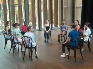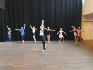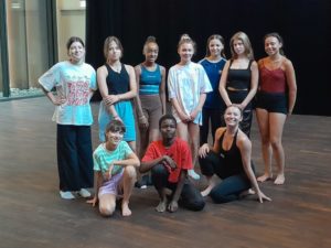 La deuxième partie du cours s’articule autour du travail de création.  » Nous tavaillons sur ce que nous allons présenter à la restitution prévue le vendredi 22 juillet, en lien avec les autres ateliers d’ART’MIX (rap, musique, cirque, voix). Je fais une proposition chorégraphique au groupe. Mais les filles auront la possibilité d’apporter leur touche personnelle en proposant également des pas qu’elles auront créés », précise Alice Chazaud.