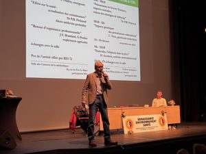 Le dernier intervenant de la soirée était Jean-Yves Branlard, lui aussi exploitant agricole. Il dénonce l’utilisation excessive de pesticides avec un exemple simple : « Grâce à l’engrais, on peut avoir de tout et partout. Avec le bio, on sème ce que la terre peut recevoir naturellement. »