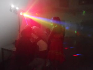 Les invités ont presque tous répondu à l’appel. Les lumières se sont éteintes pour laisser place aux spots colorés et la machine à fumée a fonctionné à plein régime. Si au départ les organisatrices avaient proposé une playlist musicale, les jeunes se sont rapidement relayés pour passer les morceaux qu’ils affectionnaient. Ainsi, la piste s’est enflammée sur les tubes Afro trap partie 7 (La Puissance) de MHD, ou encore, Barbara Kean de Mig.