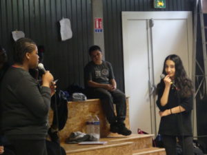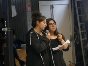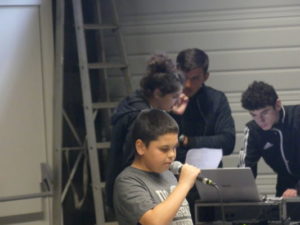 Soutenus par leurs enseignantes, Mesdames Garnier (Anglais) et Doiteau (Français), le groupe des collégiens s’est produit sur la scène du Spot, mardi 30 avril, sous le regard de leurs familles et camarades. Ils ont dépassé leur stress et leur timidité pour proposer des démonstrations de beatboxing et déclamer des textes qu’ils ont écrits sur des thématiques qui leur sont chères : le respect, la tolérance, l’amitié, le partage, le quotidien dans leur quartier, le vivre ensemble…