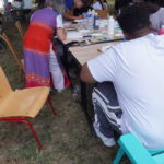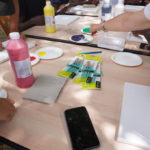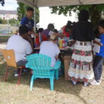Pendant qu’un groupe d’adolescentes s’initiait à la danse, d’autres jeunes réalisaient des dessins et des œuvres de street-art. Il était également possible de se rendre sur l’espace dédié au henné ou sur le pôle de création de bijoux. Les activités étaient mises en place par des animateurs et animatrices du secteur jeunesse, en collaboration des associations locales comme Culture du Coeur et le Secours Catholique. Des structures sociales et éducatives (Institut Médico-Educatif/IME Malecot, Foyer Nelson Mandela) ont également participé à ce temps fort avec des ados de leurs structures.