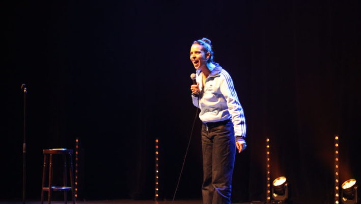Camille Lellouche, connue à travers l’humour, la musique et le cinéma, a refermé la première partie du gala après les prestations, entre autres, de Léandre, Mahaut Drama et Adel Fugazi. Artiste polyvalente, elle évoqué avec fougue son mariage et son accouchement, tout en laissant place à l’improvisation et la personnalisation de son sketch au fil d’interactions avec des spectateurs confiants et spontanés.