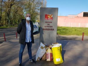 Avec Océane, ma fille, nous sommes volontaires pour aider le réseau d’associations « Le Mans Solidaire », réseau fédérant les forces vives associatives des Restos du cœur, du Secours populaire et bien d’autres. Ce réseau se mobilise pour distribuer des repas, midi et soir, à ceux qui n’arrivent pas à se nourrir quotidiennement.