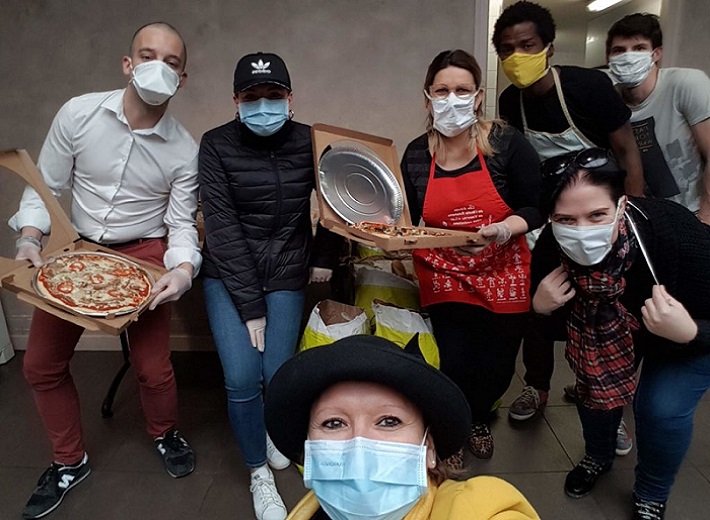 Comme nous manquions de ressources, j’ai lancé un appel aux dons sur les réseaux : artisans boulangers, charcutiers… ont répondu présents. S’en est suivi un véritable élan de générosité et de solidarité. A l’origine, le deal était de récupérer les invendus de la veille, mais beaucoup se sont mis aux fourneaux pour cette belle cause. Rillettes, confitures, plats traiteurs sont mis à la disposition des plus démunis.