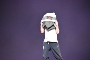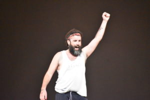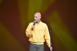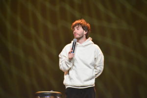 Pendant le changement de plateau, après les prestations des stand-uppers et stand-uppeuses, le public pouvait se restaurer à l’extérieur ou profiter d’un set musical à l’intérieur. À 21h, 1 300 spectateurs ont pris place au Forum pour assister au spectacle d‘Aymeric Lompret (Yolo), complet pour l’occasion. Le nombreux public a pu apprécier un seul-en-scène engagé, incisif, percutant et jubilatoire autour d’un sans-abris à la recherche de son chien. Conquis, les spectateurs ont accompagné la sortie de l’humoriste-chroniqueur par une ovation debout.