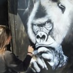 Adeline M et Artem Manon étaient présentes jeudi 8 et vendredi 9 mai. « Après avoir été portraitiste hyperréaliste pendant un an, je suis passée à autre chose après une pause. Aujourd’hui, trois éléments me caractérisent : noir et blanc, animaux et tachetés. Je suis fan des primates », avance Artem Manon qui est également engagée auprès de l’association P-WAC, un orphelinat pour chimpanzés. « Je travaille beaucoup le regard. Je veux que le public se questionne sur ce que l’animal veut dire. Nous débattrons sur ce sujet lors de Plein Champ, festival d’art urbain (4 au 6 juillet 2025 au Mans). »