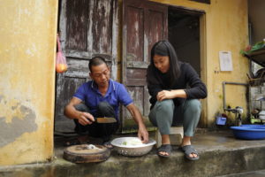 Je ne souhaite pas mettre en lumière une dichotomie. Mon regard a perçu un rythme clairement différent du nôtre. Les Vietnamiens que j’ai côtoyés se levaient plutôt tôt, vers 5h du matin et nous dînions vers 18h. Les repas étaient des festins, copieux mais aussi omniprésents au quotidien. On mangeait tout le temps à chaque nouvelle rencontre autour du thé.