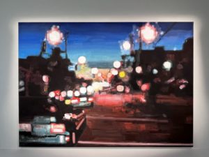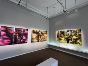 Chaque espace offre une atmosphère unique, avec des œuvres qui mélangent peinture, dessin, vidéo et lumière. L’artiste joue avec les reflets, les transparences et les ombres, créant un dialogue poétique entre la matière et le temps.