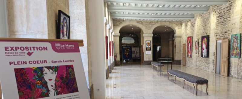Jusqu’au mardi 9 septembre 2025, Sarah Lembo présente, à l’Hôtel de ville, au Mans, son exposition PLEIN CŒUR. L’artiste originaire de Sens (Yonne) emmene le public dans un espace onirique, dans « un univers foisonnant, mystérieux[…]