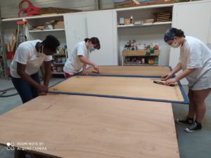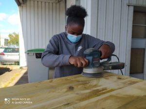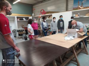 Un premier chantier avait été mis en place du 6 au 10 juillet 2020 dans des locaux des services techniques de la ville du Mans. Chaque matinée, un groupe de six jeunes a réalisé diverses tâches manuelles : réparation, restauration de différents mobiliers à l’aide de matériaux de récupération. Encadré par un animateur et un intervenant technique, le groupe a pu s’adonner au ponçage, à la peinture, au bricolage.