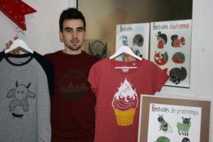 Clément Fouquet dessine et imprime ses croquis sur de la papèterie (cartes postales, affiches) ou sur du textile (tee-shirts, accessoires, sacs). Il s’inspire autant de la nature, que de l’imaginaire ou des animaux. « Je ne cherche pas à être dans la tendance, je fais d’abord des choses qui me plaisent », confie le jeune manceau tout en restant humble. Ce créateur autodidacte a installé son atelier chez lui l’été dernier et ne cesse de produire de nouvelles œuvres.
