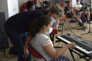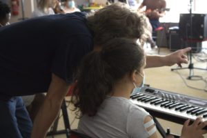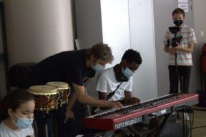 L’idée est bien passée auprès des jeunes. Cette année, nous avons réuni les différents ateliers musicaux et techniques au même endroit, contrairement à l’année dernière où chacun occupait un lieu différent (par exemple la MPT Jean Moulin ou la MJC Ronceray). Les stagiaires des différents ateliers ne se voyaient pas entre eux, et le projet final n’était qu’une vidéo dans laquelle chaque groupe, filmé séparément, jouait sa partie de la composition créée à l’avance. Cette année, nous pouvons créer l’œuvre avec les jeunes.