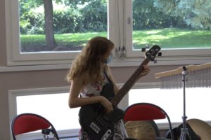 Loreleï, 14 ans : « Je fais déjà de la basse et je cherche à m’améliorer. Je jouais seule, mais maintenant que j’ai appris à jouer en groupe, je trouve ça mieux. Au début du stage, je ne m’attendais pas à ce qu’on ait une représentation quelques jours plus tard, mais au final je trouve ça plutôt sympa de pouvoir jouer tous ensemble. »