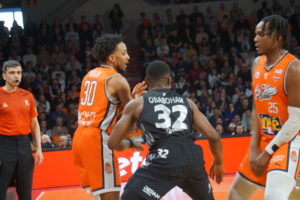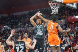 Au sortir des vestiaires, les Manceaux, emmenés par un Morgan intenable, jouaient avec plus de justesse et de rigueur (44-39′, 22′). Les Sarthois prenaient de nouveau le match en main en exerçant une grosse pression sur les Rhodaniens tout en se montrant inspirés dans la conclusion (50-39, 24′). La machine mancelle emballait la rencontre et maintenait l’équipe de l’ASVEL à distance (56-46, 26′). Grâce à un tir primé de Marcus Gomis, le MSB portait son avance à 10 unités avant l’ultime quart-temps.