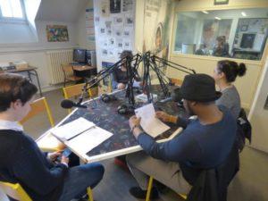 Le mardi 22 mars 2016, des élèves de Costa Gavras se sont rendus au collège Berthelot pour visiter les locaux de la radio associative, au Mans. Cette visite s’inscrivait dans une séquence de travail sur la presse et leur permettait de découvrir autre chose que les articles écrits sur papier.