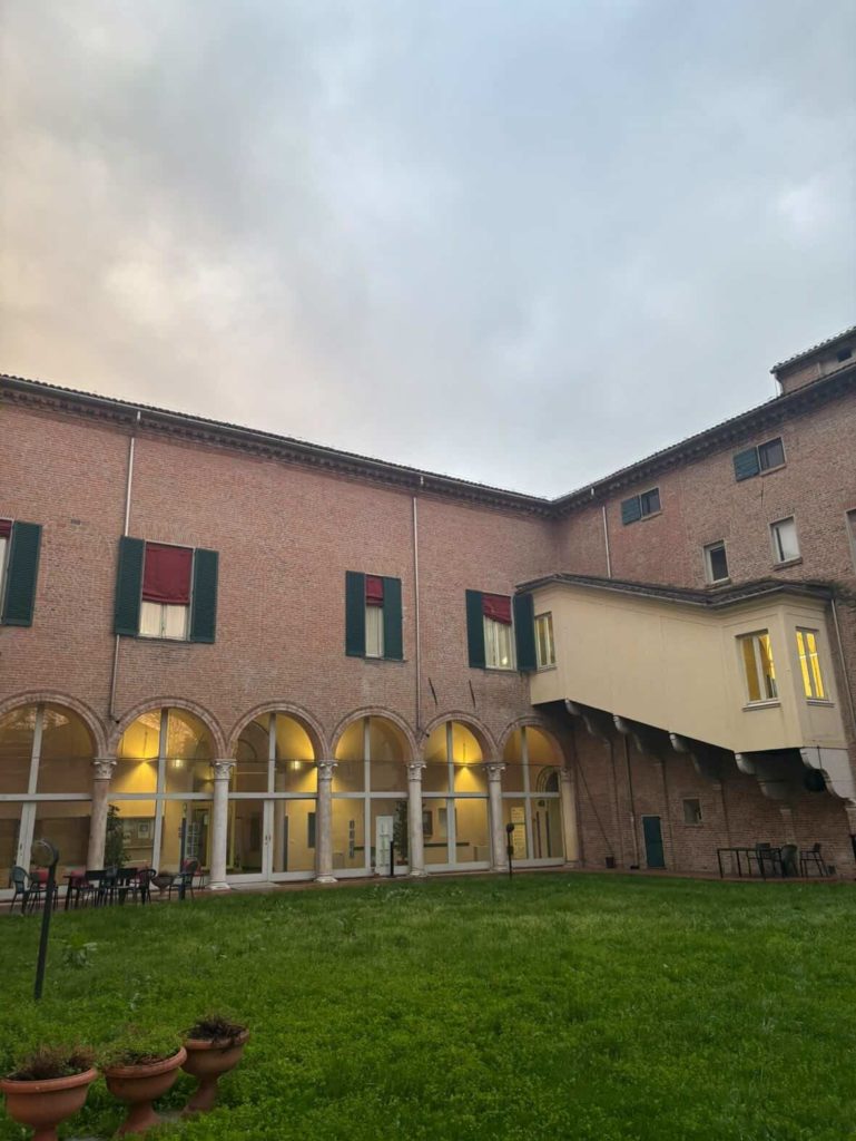 S’il y a un monument qui doit représenter Ferrara, il s’agit évidemment du Castello Estense. Le château fut édifié en 1385 après une révolte populaire, à l’initiative de Niccolò II d’Este qui souhaitait se protéger et affirmer son autorité. Construit en briques rouges, il est entouré d’un large fossé rempli d’eau et défendu par quatre tours massives reliées par des ponts-levis. Son plan carré et ses proportions équilibrées témoignent de la transition entre architecture militaire et résidence princière.
