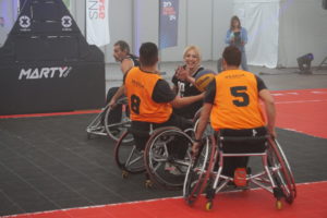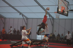 En fauteuil, en mode « 3×3 » ou dans les airs, les adeptes de la balle orange ont régalé le public.