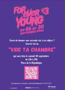 Forever Young #3, du mardi 26 au samedi 30 septembre 2023, dans divers lieux du Mans. Evénement gratuit. Le récapitulatif du programme est disponible ici : Forever Young #3.