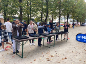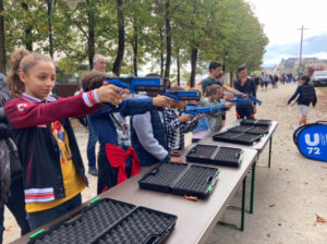 Le public a eu l’occasion de découvrir ce sport émergent durant l’après-midi. Initiation et compétition s’alternaient. Les visiteurs étaient invités à s’entraîner au stand de tirs. Petits et grands s’exerçaient à atteindre la cible. Quelques minutes plus tard, des équipes se constituaient pour s’affronter. Débutants et expérimentés étaient de la partie. Tous se sont pris au jeu.