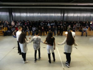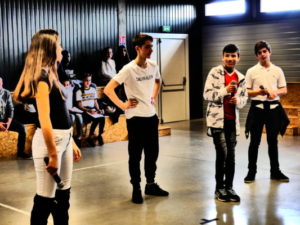 Vendredi 13 avril, les élèves ont présenté leurs productions au Skatepark Le Spot. Une première représentation était destinée à trois classes de 4e. La plupart évoluait pour la première fois devant un public. Mais rapidement, la notion de plaisir a pris le dessus sur le trac. En fin de journée, ils ont joué et interprété leurs créations en présence de leurs familles.