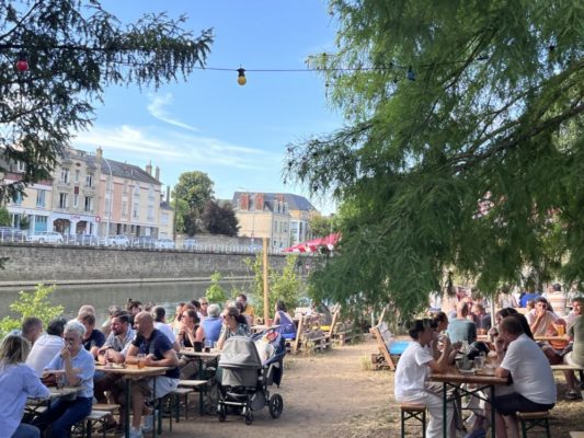 Installée à deux pas des remparts, en contrebas du square des Tanneries, cette guinguette a su redonner vie à un lieu un peu oublié. Dès les premiers beaux jours, elle devient un refuge pour celles et ceux qui cherchent un moment simple, en dehors de l’agitation urbaine. Guirlandes lumineuses, mobilier en bois, transats sous les arbres : tout ici invite à la détente.