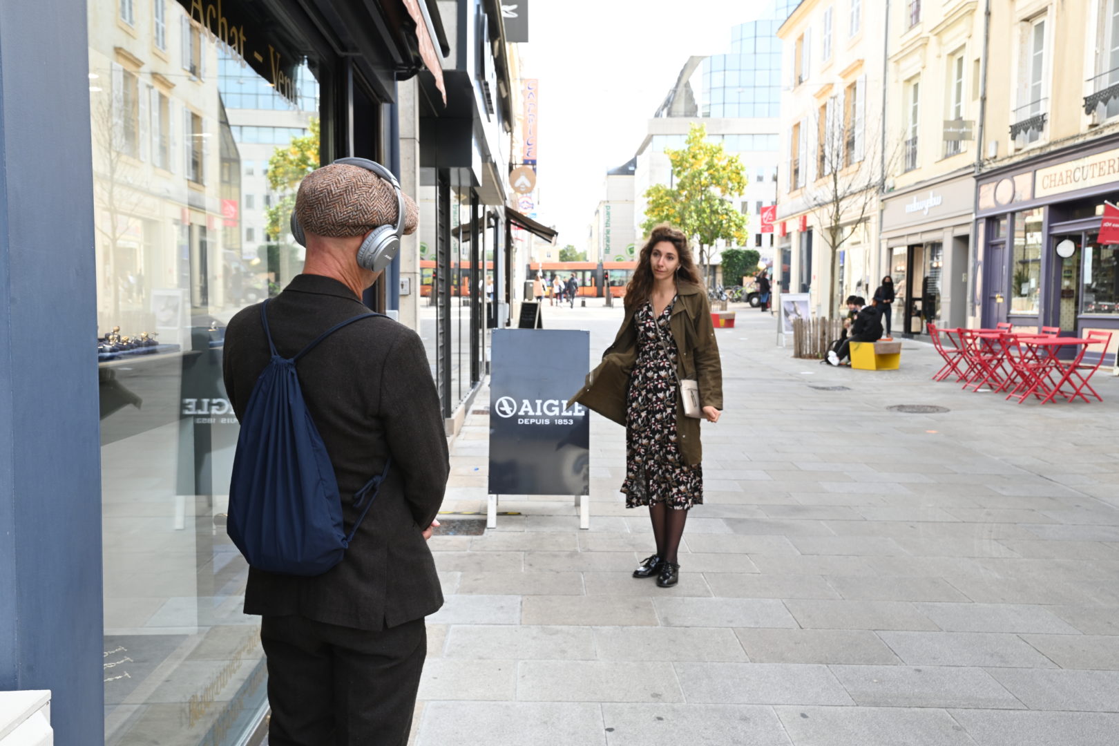Les écouteurs sur les oreilles, on oublie très vite qu’un groupe nous accompagne, tandis que l’on suit l’histoire des deux protagonistes. On vit principalement cette expérience en solitaire. Mais en même temps, nous restons concentrés à écouter ce qu’il se passe dans notre bulle commune. Un effet de groupe se créé. Un peu comme si le monde extérieur s’effaçait et qu’il ne restait que les acteurs et les spectateurs.