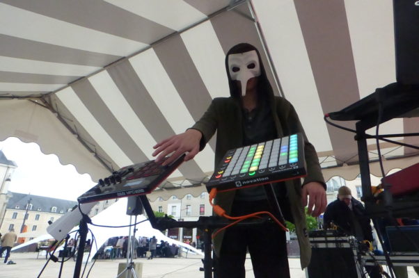 Le jeune beatmaker sarthois a offert un set musical exaltant au Marché des jeunes créateurs, samedi 6 mai, place de la République. Après avoir fait partager sa musique aux passants, l’artiste masqué a accepté de répondre au Vitav.