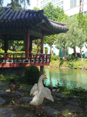 Ce quartier a été un de mes préférés à Incheon. Souvent appelé « smart city », Songdo a une allure futuriste. Centre d’affaires international en développement, c’est un pôle économique majeur. Le Central Park est une bulle de nature entourée par les gratte-ciels. Le calme qui y règne est impressionnant. Au cœur de ce parc se trouve un village Hanok (bâtisse traditionnelle coréenne). Le contraste frappant entre les hanoks et les immenses buildings qui se dressent derrière eux apportent une atmosphère unique.