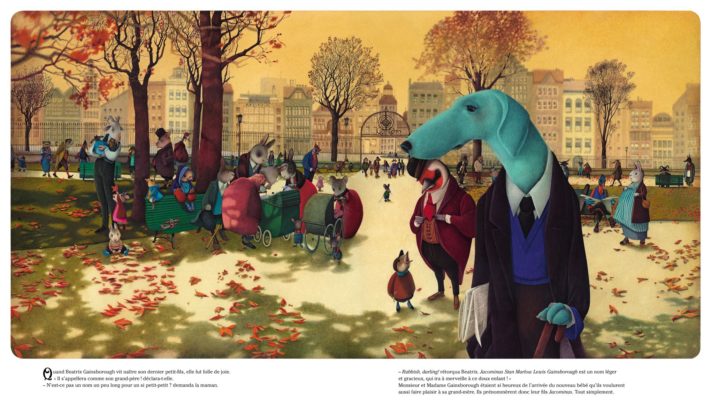 Rébecca Dautremer publiait en fin d’année 2018 un nouvel album intitulé « Les riches heures de Jacominus Gainsborough ». Figure phare de la littérature jeunesse, elle raconte ici la petite histoire d’un jeune lapin introverti qui s’avance dans la vie le pas incertain, entouré de son ami, Policarpe. Jacominus grandit, sa patte folle le suit. Il est mélancolique et devrait bien réussir à avouer un jour son amour pour Douce. En attendant, il navigue sur les mers, philosophe, fait des rencontres passionnantes, d’autres un peu moins…