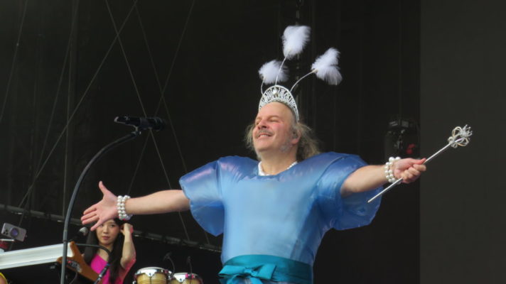 Philippe Katerine a débarqué sur scène avec son folklore habituel, vêtu en tenu de Reine d’Angleterre avant de se dévêtir pour chanter « Nu », chanson qu’il avait interprété lors de la cérémonie d’ouverture des jeux olympiques de Paris 2024. L’artiste invitera des fans déguisés en banane pour reprendre avec eux une des chansons cultes de son répertoire fantaisiste et poétique. Plus tôt dans l’après midi l’interprète de « Louxor, j’adore » avait profité de ses balances pour donner un mini-concert aux bénévoles et faire quelques photos souvenirs. Un geste très apprécié par les personnes présentes.
