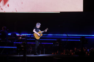 L’artiste britannique a offert un show à la scénographie impressionnante. Au milieu du stade, un écran géant trônait, diffusant des images d’archives de Pink Floyd et de nombreux messages engagés. En effet, le concert était placé sous le signe du militantisme, dénonçant les crimes de guerre des différents présidents américains, le racisme ou encore les violences policières. Un portrait d’Adama Traoré a d’ailleurs été projeté le temps d’une minute sous les applaudissements de la foule. Des slogans tels que « Indigenous rights, reproductive rights, human rights* », ou encore, un ironique « Steal from the poor give to the rich* » ont ponctué le spectacle, donnant le ton de l’engagement revendiqué du chanteur.