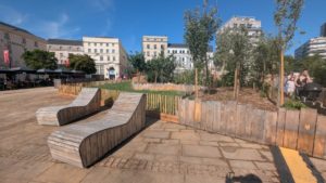 Les passants croisés semblent particulièrement apprécier les deux grandes pergolas, les transats offerts et les nombreux brumisateurs, rafraichissant l’atmosphère. Interrogés, les passants semblent conquis par le dispositif : « Je trouve que c’est génial, ça crée une sorte de contraste entre le côté très urbain de la place de la République et cette proximité avec la nature permise par cet espace. J’adore « , confie Zoé, étudiante.
