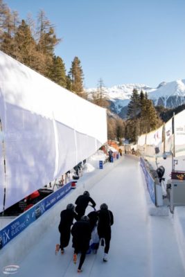 Photo de poussée, Thomas Delmestre est sur la gauche lors d’un entraînement avec l’équipe de France à Saint Moritz.