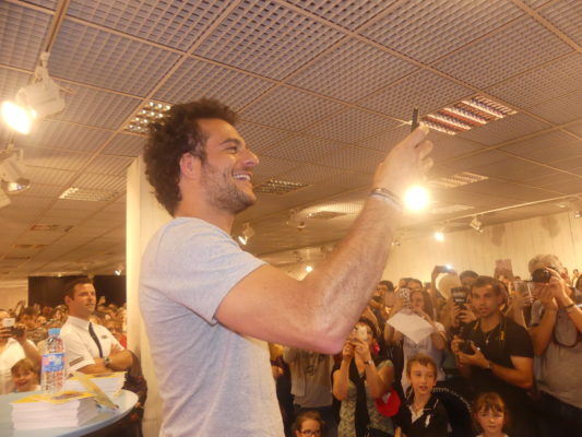 L’arrivée de l’artiste a créé une petite émeute et déclenché quelques cris d’hystérie. Tout sourire, le chanteur a filmé l’assistance avec son téléphone avant d’échanger quelques mots avec un enfant en fauteuil roulant. En toute décontraction, il s’est ensuite prêté au jeu des dédicaces et des photos avec chaque personne pendant près deux heures. Le public a saluer sa simplicité et sa disponibilité.