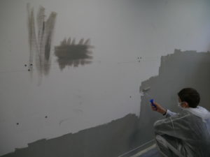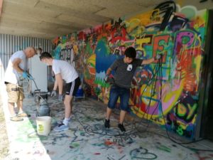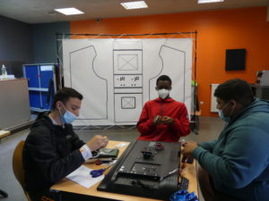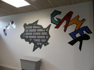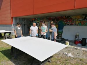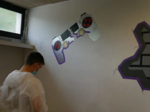 Au même moment à l’Espace Jeunesse Sablons, six autres adolescents en combinaisons blanches jouent aux peintres en bâtiment. Pinceaux ou rouleaux à la main, ils décorent la salle d’e-sport sous l’œil attentif d’Anas, un des animateurs référent de l’EJS. A l’issue de la semaine, les murs et meubles seront comme neufs, et des stickers sur le thème des jeux vidéos viendront compléter la décoration du lieu, créé il y a quelques mois en partenariat avec l’association Fila’Mans.