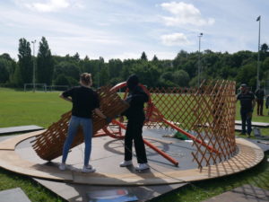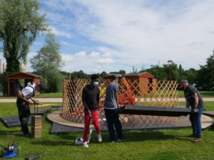 Mercredi matin, 10h. Six jeunes Manceaux s’affairent autour d’une mystérieuse structure à l’île aux Sports. Guidés par les animateurs Jean-Pierre et Nassim, ils installent, attachent, soulèvent, martèlent, réparent et nettoient les différents éléments d’une yourte, qui servira à des animations d’été dans le cadre d’une « base nature » qui sera installée à l’île aux Sports.
