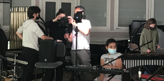 Depuis le début de la semaine, on filme les répétitions des autres ateliers : les musiciens, les ingénieurs du son, les chanteurs, les danseurs et les circassiens. On va aussi enregistrer la représentation commune du vendredi 16 juillet. On va ensuite récupérer toutes nos prises de vue de la semaine pour les monter et réaliser une sorte de making-of du projet !