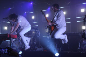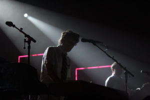 Après de longues minutes d’attente, les cinq membres des General Elektriks ont investi la scène, vêtus de blanc, et prêts à partager presque deux heures de funk et de sons électros avec une salle des Saulnières copieusement garnie. Ce concert donnait l’occasion au groupe d’Hervé Salters (claviériste, compositeur et chanteur) de présenter « Party like a human », son dernier opus sorti en septembre 2021.