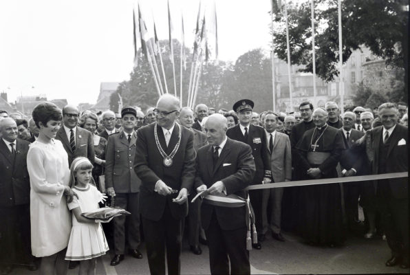 Photo : Archives du Mans (inauguration de l’avenue Paderborn, au Mans, en présence des Maires M. Maury et M. Tölle).