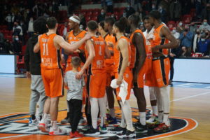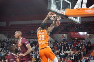 Pour tenter d’inverser la situation, Orléans mettait en place une défense de zone qui posait des soucis aux hommes d’Elric Delord. L’écart descendait même à seulement 6 points peu après la moitié du quart-temps (66-60, 37′), avant que Scott Bamforth mette son équipe à l’abri grâce à ses premiers points du match, à 3 points évidemment. Le match se terminait sur un 13-0 sous les chants des supporters, heureux de voir une nouvelle victoire sur le parquet de la salle Christian Baltzer (79-60, score final).