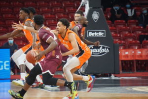 Le début de seconde mi-temps ressemblait à la fin de première. L’écart passait ainsi sous la dizaine de points avec des Tangos auteurs de seulement 5 unités durant la moitié du troisième acte (49-40, 25’). Le bel apport du banc illustré par le dunk rageur de Baptiste permettait de remettre l’équipe dans le bon sens au terme d’un quart-temps défensif (60-47, 30’).