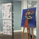 Cinq de mes toiles sont exposées dans cet espace éphémère. Ces peintures ont toutes un dénominateur commun : elles mettent en scène des femmes fortes. À travers mes portraits colorés, je prône l’acceptation de soi et l’émancipation féminine. Je peux parfois m’inspirer de figures féministes ayant réellement existé ou tout simplement représenter des femmes sorties tout droit de mon imagination. Mes peintures mettent également en lumière des traits de personnalités ou des caractéristiques qui peuvent être mal perçus, à tort, par la société. À travers mon art, je veux transformer le mauvais en bon. Mes œuvres sont une ôde à la positivité et à la beauté.