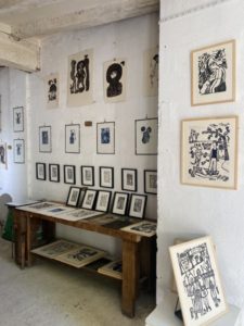 Ghislain Basset travaille différentes techniques d’estampe, dont l’aquatinte*, la linogravure et le monotype**. A travers cette exposition, l’artiste dévoile son travail prolifique en présentant des dizaines de tirages aux formats tous très différents. Au fil des années, il s’est perfectionné et propose aujourd’hui plusieurs tirages au sein de la galerie.