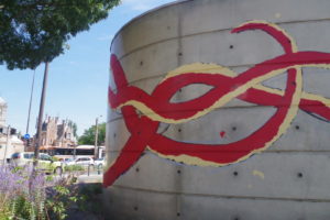 L’œuvre de War ! est visible au Mans, arrêt de tram Saint-Martin.