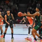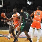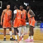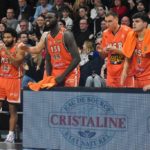 Sous l’impulsion de Yeguete et Howard, le MSB prenait les commandes en début de match (5-2, 1′; 10-7, 3′). Jones apportait sa contribution sur deux belles inspirations (14-7, 5′). Mais Justin Bibbins et Nanterriens allaient profiter de quelques failles dans la raquette mancelle pour recoller aux talons des locaux (14-13, 6′; 17-17, 8′). Un tir primé de Pinault donnait l’avantage aux visiteurs au terme du premier acte (19-20, 10′).
